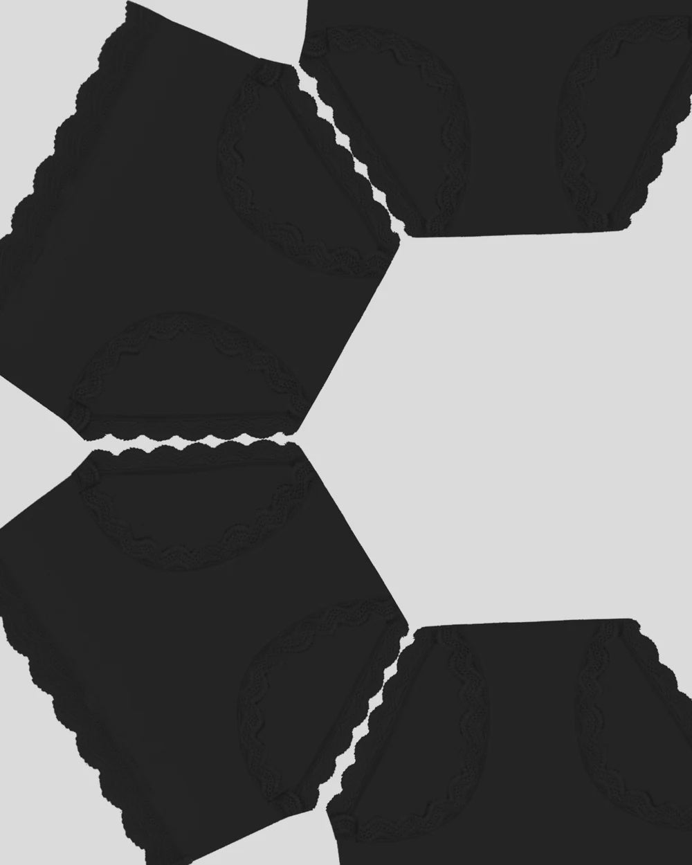 High Rise Knicker Four Pack in Black finished with lace trim, packaged with love in a gift box.