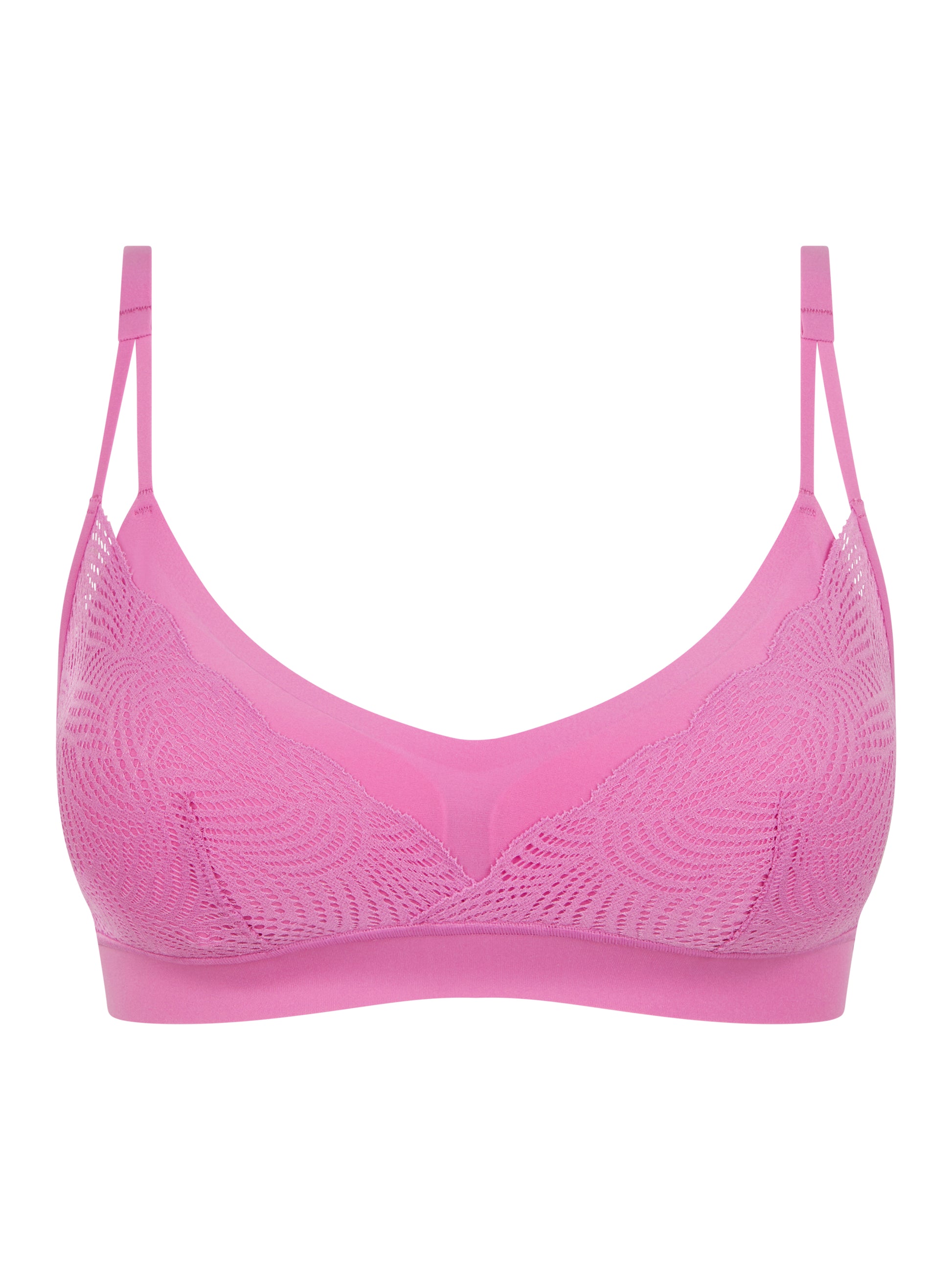 Bralette lace Removable pads Thin and adjustable straps Lace layers that cover the cups Bandeau back Fits all body shapes up to G cup Seamless for optimum comfort Totally invisible under clothes