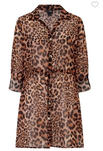 Pour Moi | Chiffon Button Through Beach Shirt | Leopard