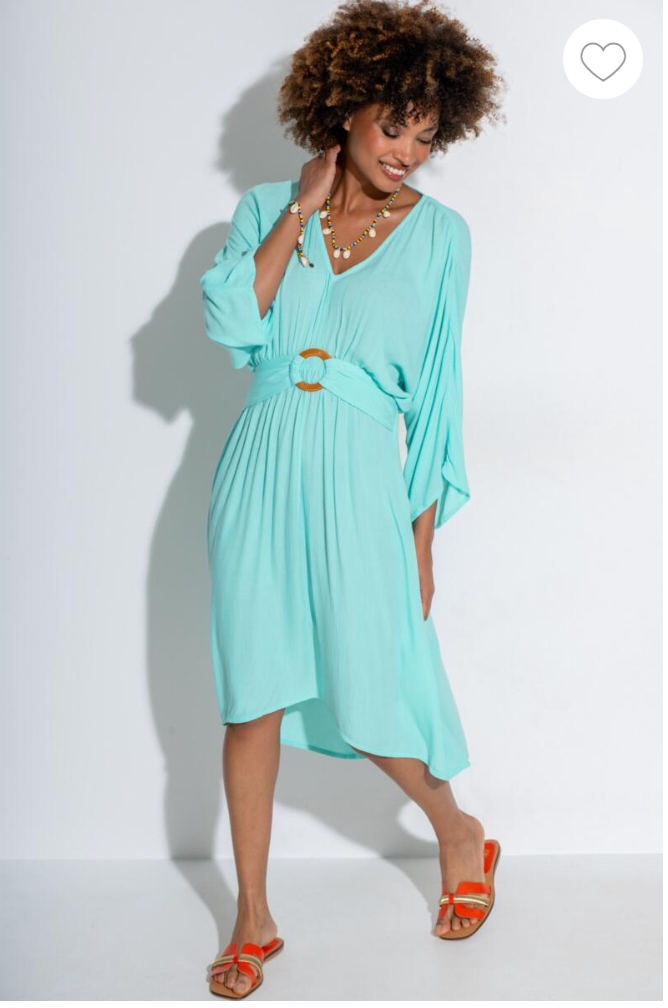 Pour Moi | Crinkle O Ring Midi Beach Kaftan | Aqua