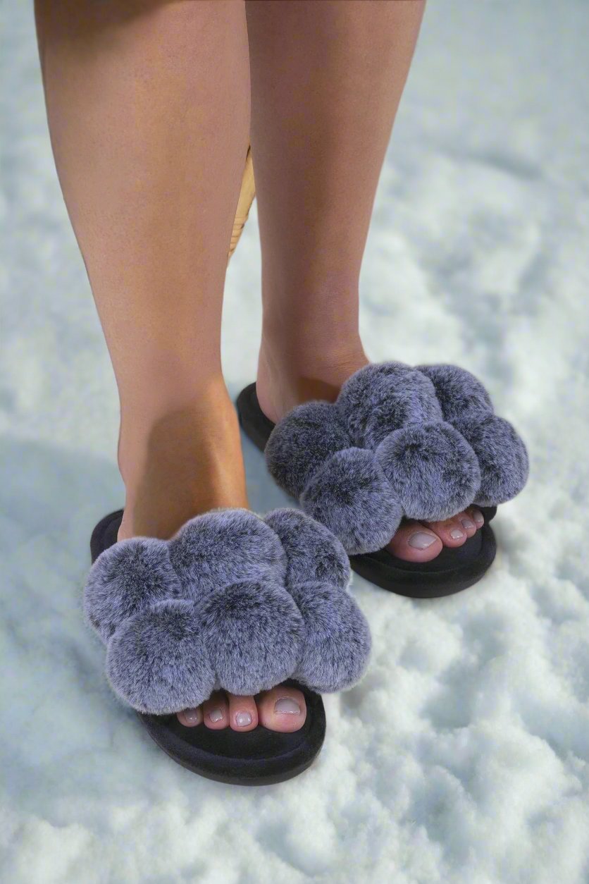 Choose cute and comfy with these pom pom slippers from Pretty You London. The padded velour upper sits on a durable sole designed for comfort. The oversized faux fur pom poms on the overband adds a touch of fun. Why have one pom pom when you can have six?