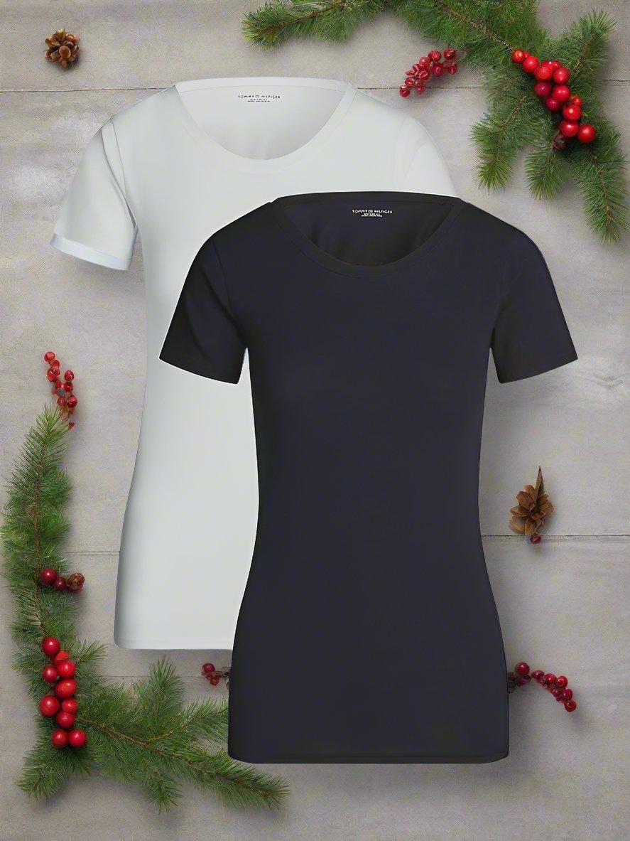 Give your basics a boost with these two comfy T-shirts crafted from stretch fabric and finished with iconic flag embroidery.