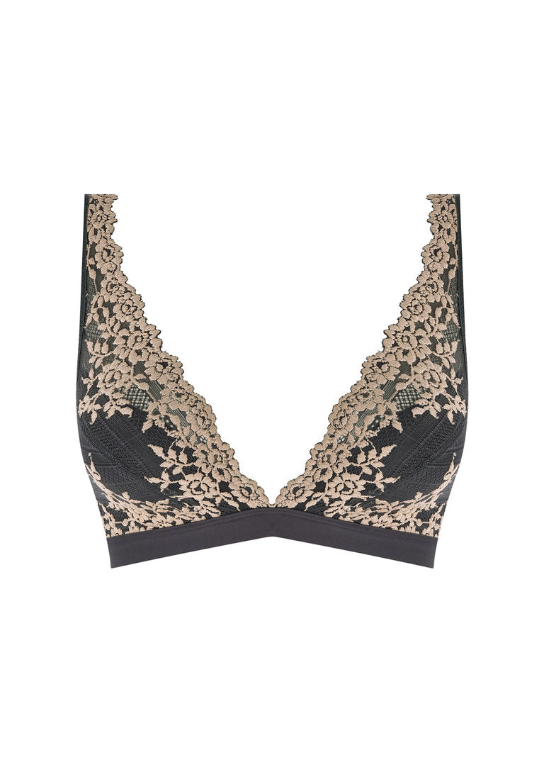Adorned in floral lace, the Soft Cup bralette showcases decorative all stretch lace cups and a wide underband for great support. Finished with a two ply mesh back and decorative fully adjustable straps that can also be worn as a racerback.